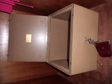 Ich habe einen Feuerfesten Tresor mit Bodenverankerung. Länge: 35 cm Tiefe : 28,5 cm Höhe : 21 cm