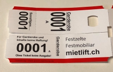 Garderobennummern, Rolle à 1000 Kaufpreis Fr. 25.-- Miet-Lift Nummer 13607 Nummern zum Abreissen mit "Miet-Lift" Logo. 3-teilig mit Lochstanzung für Nummern...