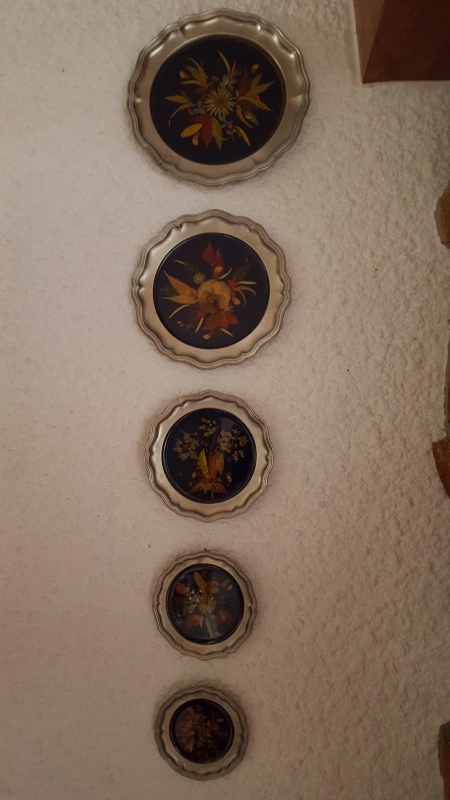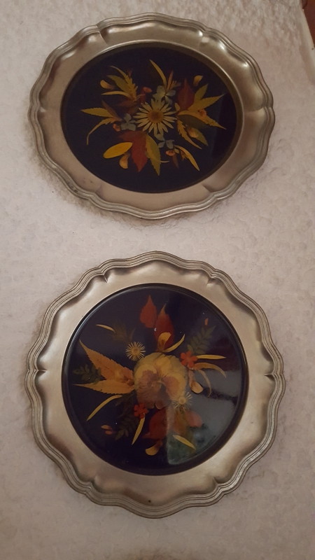 5 schöne Zinnteller mit Muster mit natürlichen Blumen geschaffen, getrocknet und im Harz, den Verkauf der Partie (5 Stück) kein separater Verkauf, kein Paypal werfen.