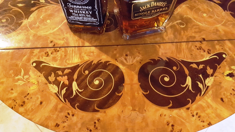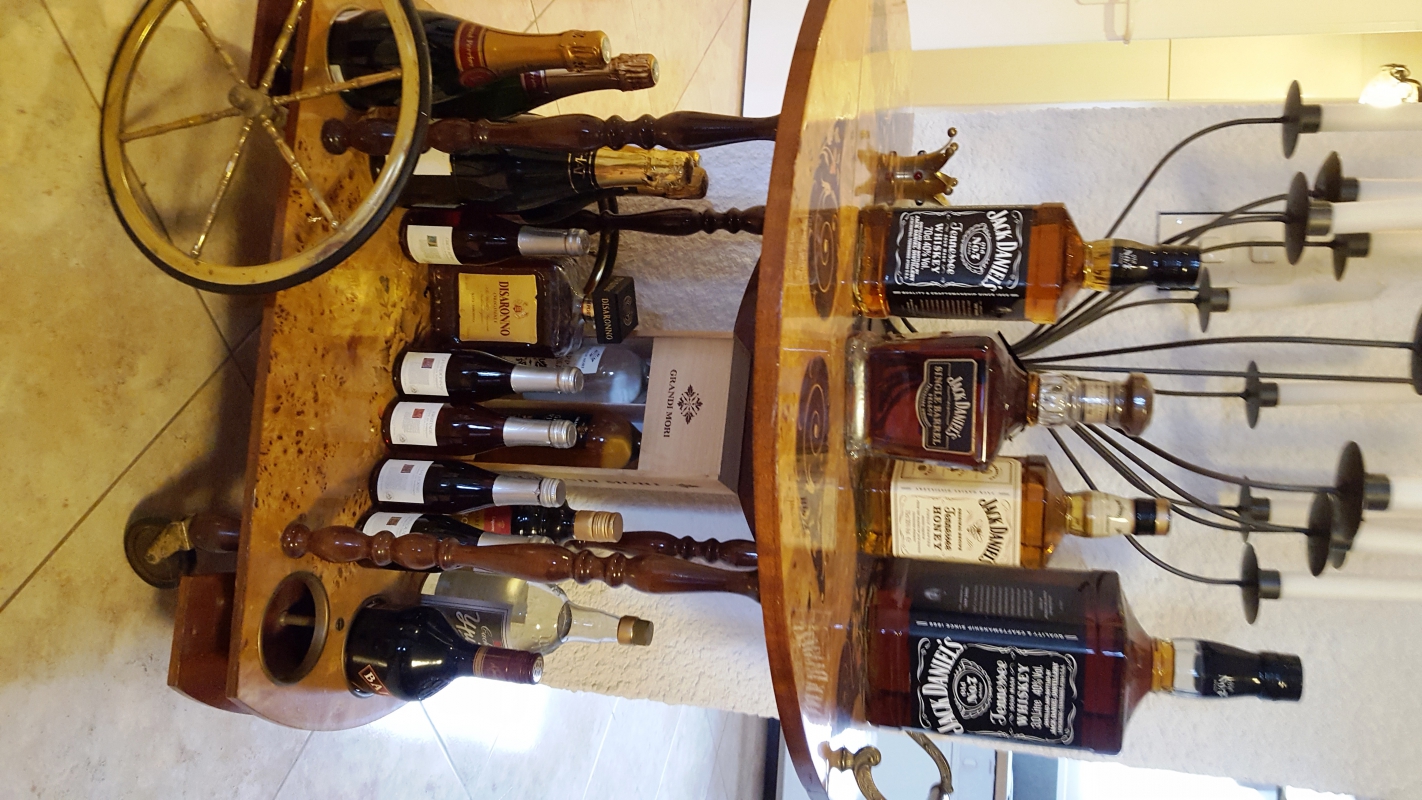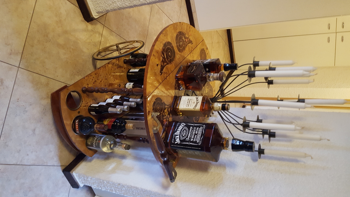 Große Eindruck für Ihre Gäste, wunderbarer Service Boy, Roulette-Rad und Messing, Inlay Dekoration, faltbaren runden Tablett auf 2 Seiten, Loch 6 Flaschen