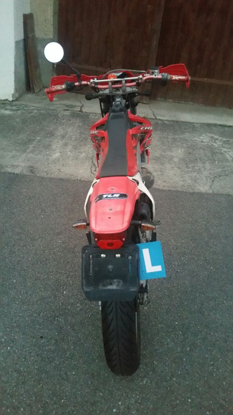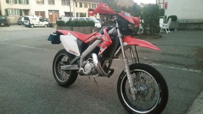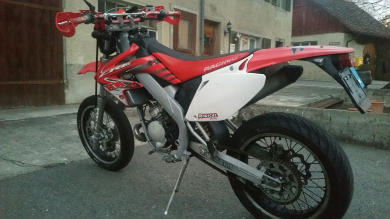 Gemacht wurde: Tachohalterungen ersetzt, Licht eingestellt, neue Blinker hinten, Lenkkopflager ersetzt, neue Bremsen mit neuen Bremsscheiben hinten, neue Kette, Vergaser gereinigt,hinterer Pneu neu. Vorderer Pneu hat noch 80%.