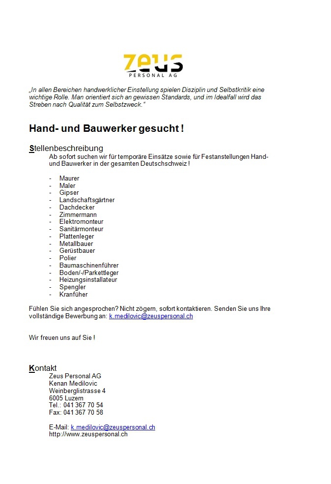 Wir sind jederzeit auf der Suche nach Hand- und Bauwerkern für jegliche Art von Einsätzen.