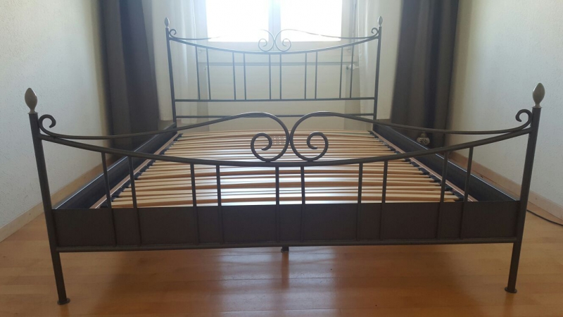 Schönes Bettgestell aus Metall inklusive Lattenrost (160x200); ohne Matratze
