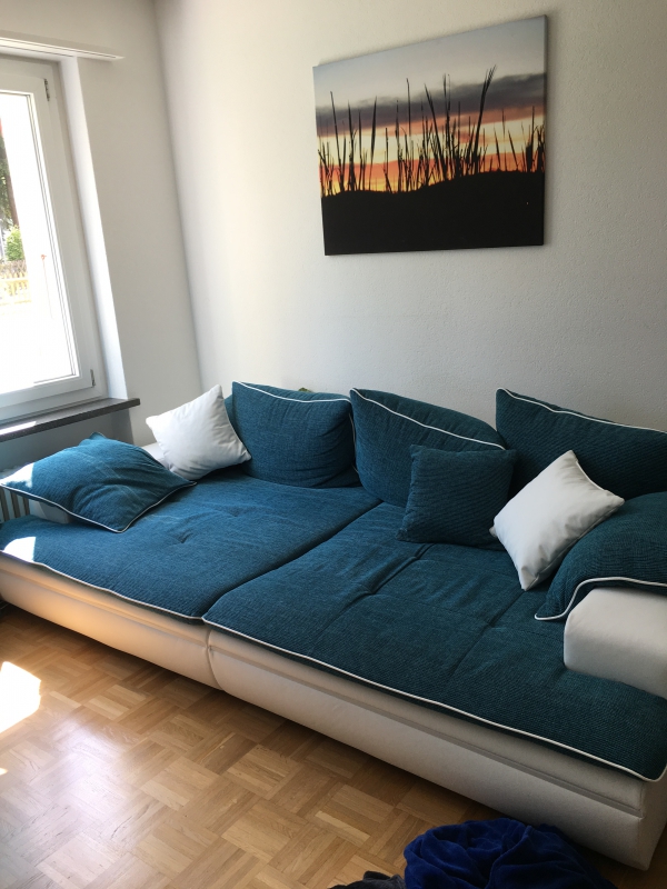Ich möchte mein 1.5 Jähriges Sofa verkaufen da ich bald aus meiner Wohnung ausziehe,es hat praktisch keine gebrauchsspuren. Das Sofa ist 2.60m auf 1.42 m gross und hat 9 Kissen dazu. Es hat ein LED Streifen mit einer Fernbedienung. Neupreis:959.20 Fr. Das Sofa kann gerne in Bern Besichtig werden