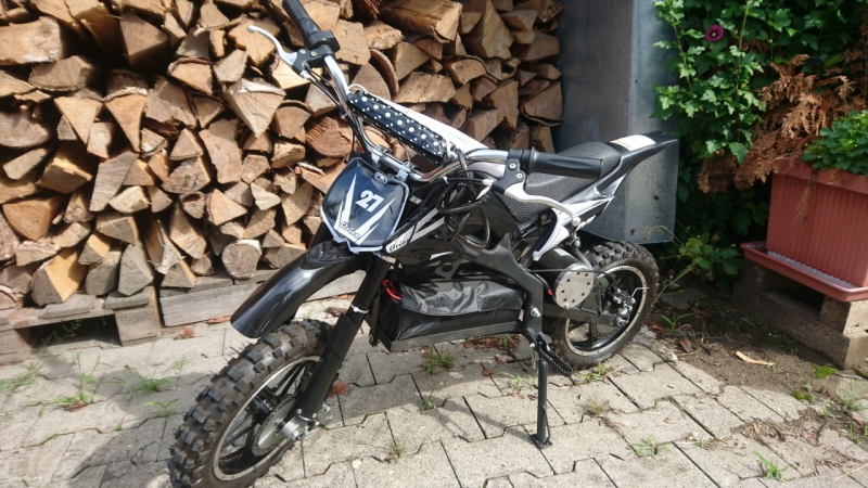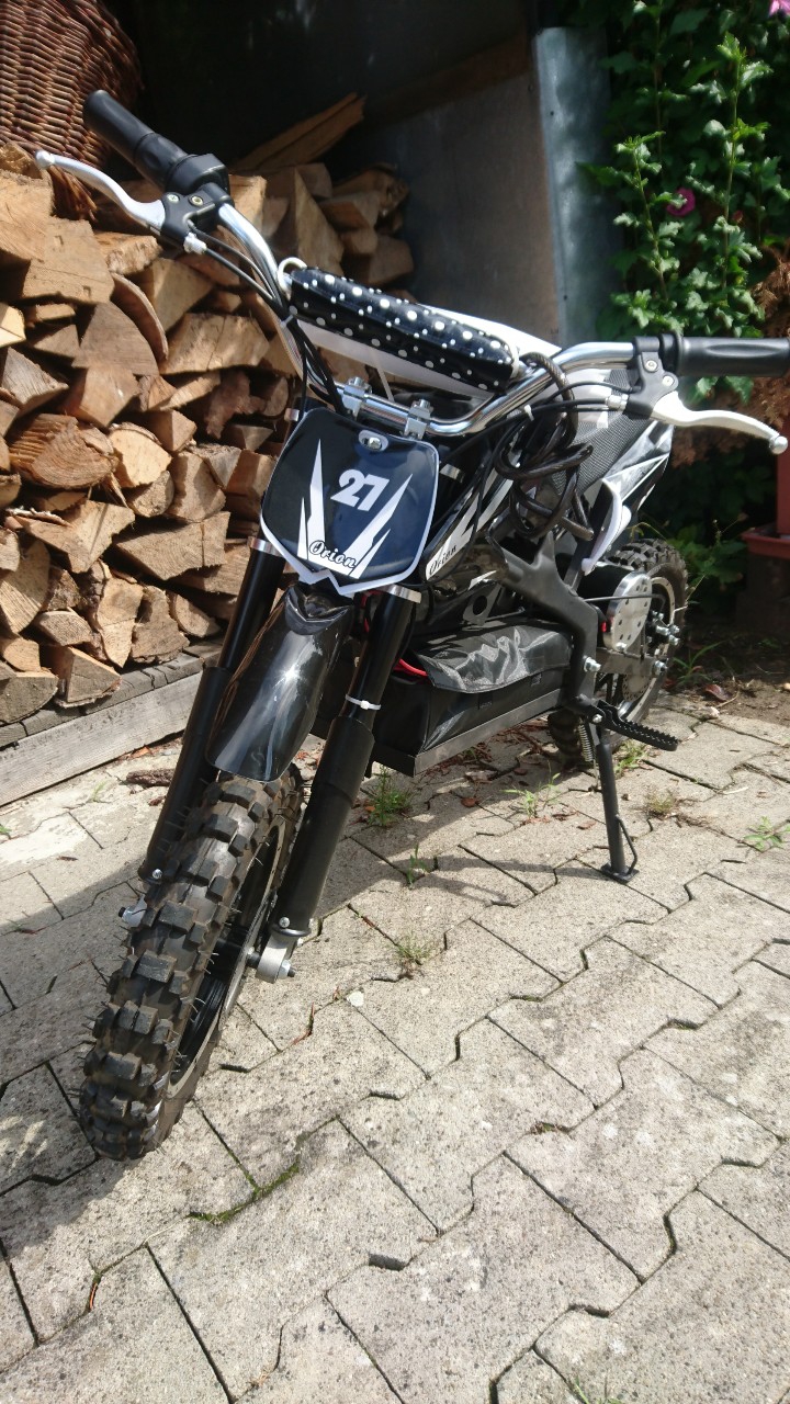 Kinder Crosstöff, kein Lärm Dank starkem 800Watt Elektromotor, vollgefedert,Neu und montiert.