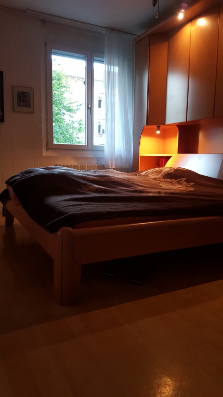 Grösse : 2m x 1.80m mit integrierten Schränke.