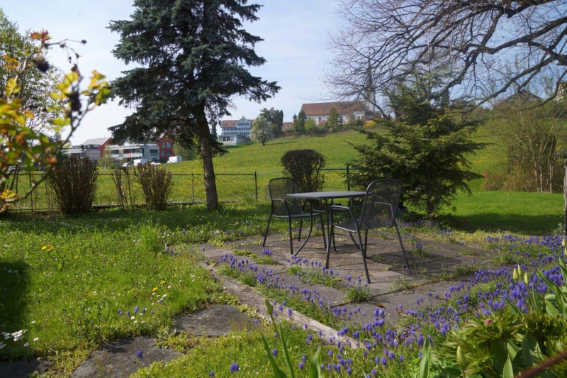 Zu vermieten ab sofort oder nach Vereinbarung in 3-Familien-Haus mit grossem Garten: Schöne, sonnige 3.5 Zimmerwohnung im 1. Stock mit separatem Abstellraum, Kelleranteil und eigenem Parkplatz. Grosse Küche mit GS und