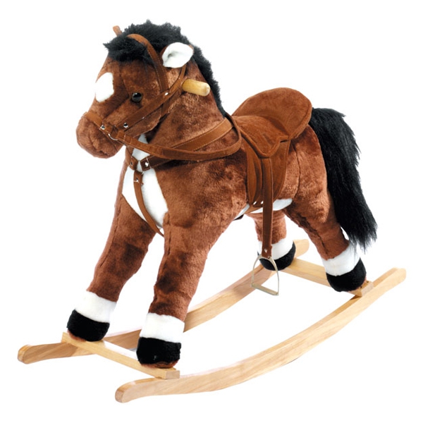 Das Schaukelpferd mit Sound von Happy People bietet Kindern ab 3 Jahren ein tolles Schaukelvergnügen. Dieses Pferdchen mit Plüsch Fell wippt mit seinen Holzkufen fröhlich vor und zurück. Der Soundeffek wird den kleinen Reiter begeistern. Das Schaukelpferd hat eine Sattelhöhe von 37cm. Zügel und zwei Griffe sowie die Steigbügel bieten guten Sitz, wenn geschaukelt wird. Das Schaukelpferd aus Plüsch ist mit Zaumzeug und Sattel ausgestattet. Steigbügel und Haltegriffen sorgen für einen guten Halt und sicheren Ritt.