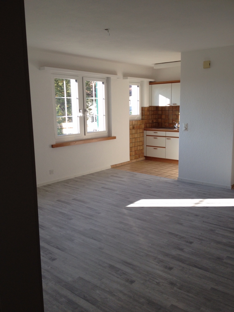 Wir vermieten per 1. Oktober oder nach Vereinbarung eine helle und gemütliche Maisonette-Wohnung im Dachgeschoss (3. + 4. OG). Alle Zimmerböden sind mit einem pflegeleichten Laminat ausgestattet. Die Nichtraucherwohnung verfügt über ein Bad mit Badewanne und Dusche. Die neuen 3-fach vergasten Fenster sowie die Bodenheizung auf beiden Etagen sorgen für ein angenehmes Wohnklima. Waschmaschine und Tumbler befinden sich in der Waschküche. Innerhalb der Wohnung sind zwei Stauräume mit Türen abgetrennt. Zur Wohnung gehören weiter ein Kellerabteil sowie ein Autoabstellplatz im Freien.