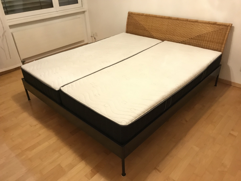 Metalbett mit Korbkopfteil 200x180cm mit Inhalt