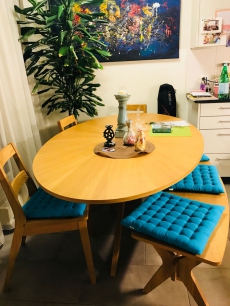 Holztisch (oval 190x110cm) mit Bank und 3 Stühlen.