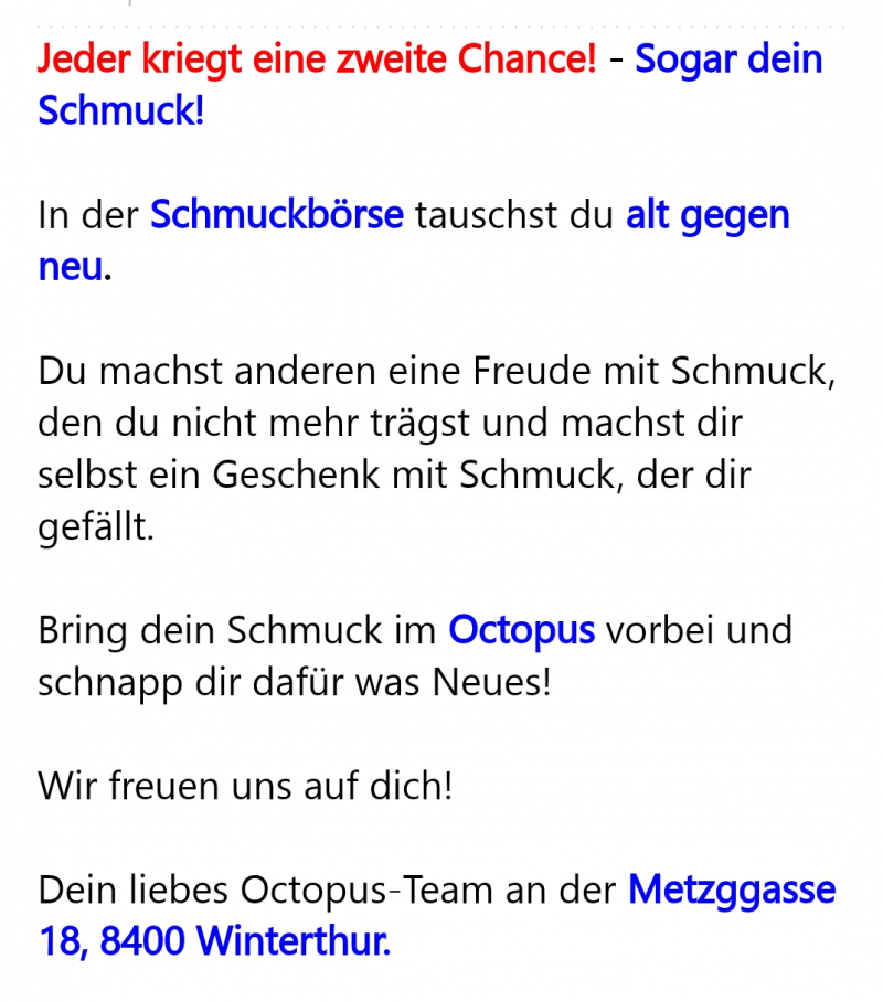 Schmuckhöhle Octopus Winterthur kommt vorbei es lohnt sich