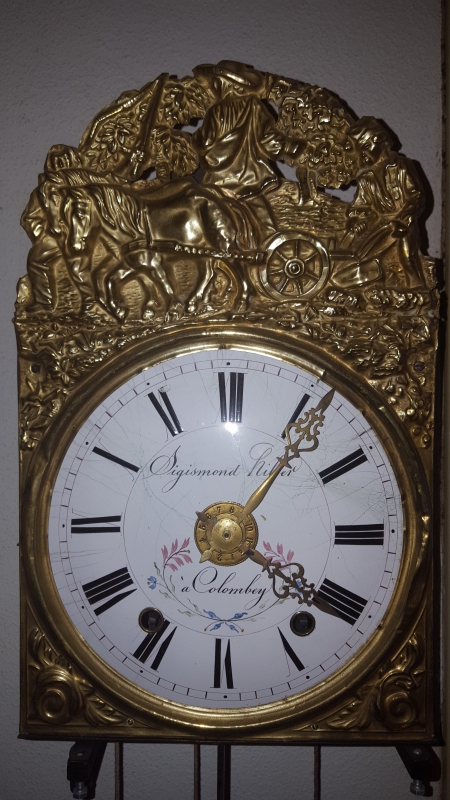 Verkaufe wunderschöne Comtoise Uhr aus der 2. Hälte des 19. Jahrundert.Die Messingprägung zeigt eine bäuerliche Szene zum Thema Ackerbau.Läuft einwandrei. Preis im FB...360 Fr ein wenig verhandelbar