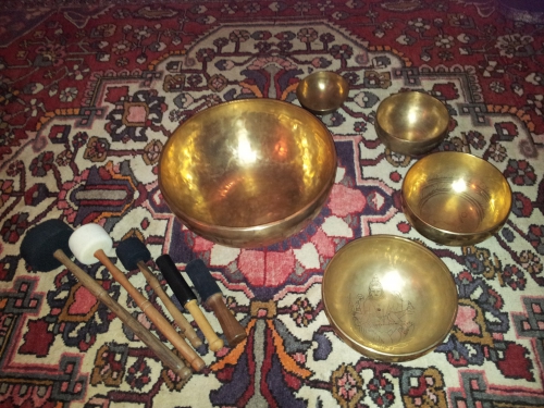 Ich Arbeite mit Muschel, Trommel und Tibet und Nepalschalen.
