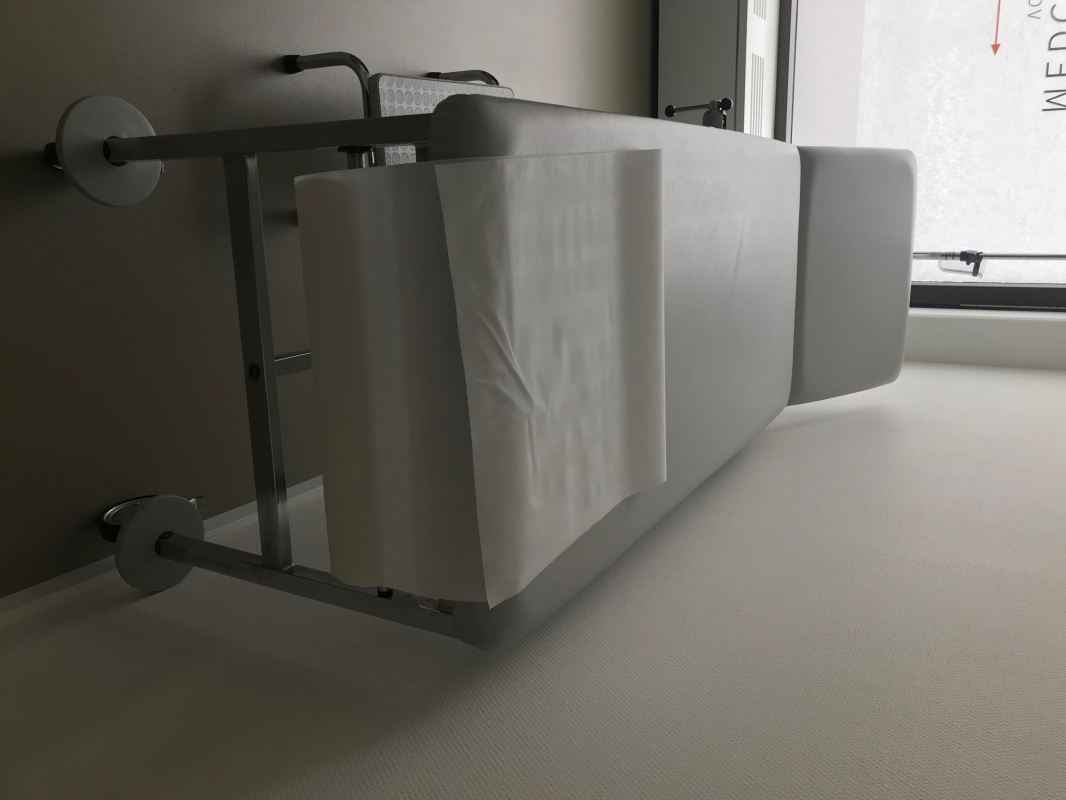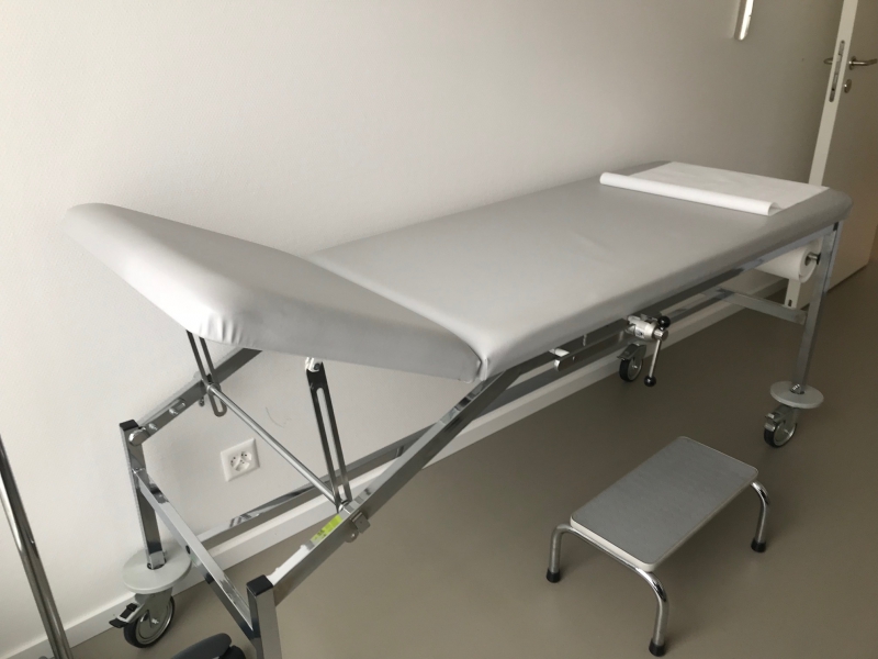 Arztliege wie neu. Mit Räder und abmontierbaren Seitenteilen.
