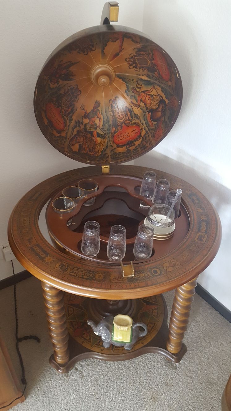 Schöne Hausbar Weltkugel mit Inhalt Gläser zu verkaufen. Zustand gut - Muss abgeholt werden.