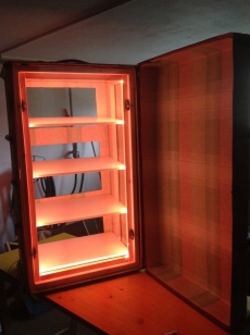 Ich habe einen alten Koffer der sehr gut für einen Koffermarktverkäufer geeignet ist! Haben ihn liebevoll restauriert, ausgekleidet, höhenverstellbares Regal mit 4 Böden, vorne mit abnehmbarer Plexischeibe und Led Beleuchtung. Masse ca. H 90cm B 52cm T 42cm. Bei Interesse gerne anschreiben. Koffer muss in 9443 Widnau abgeholt werden.