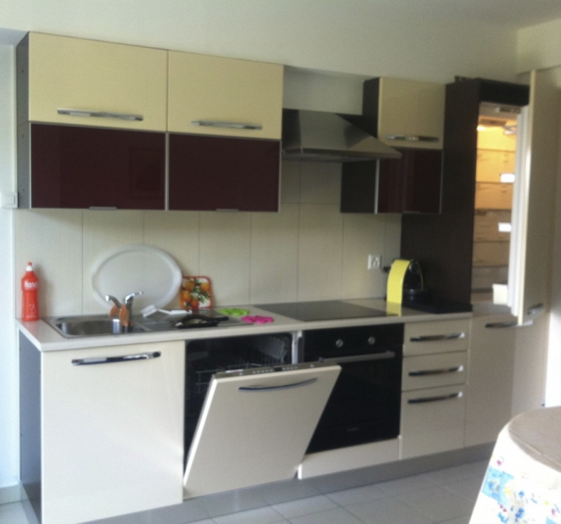 Küche Kühlschrank mit grossem Tiefkühlabteil Mikrowelle Spülmaschine Wasserkocher Küchenutensilien vollständig Backofen Keramikkochherd Toaster Kaffeemaschine Kapseln gratis,Wifi gratis