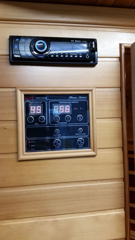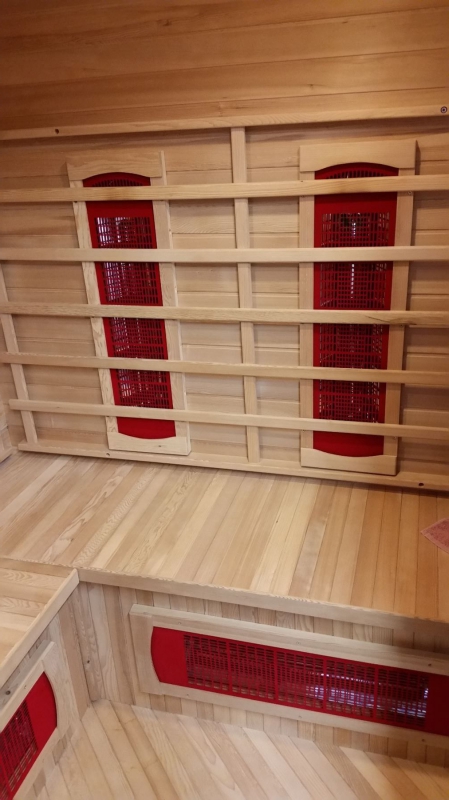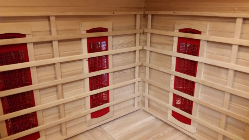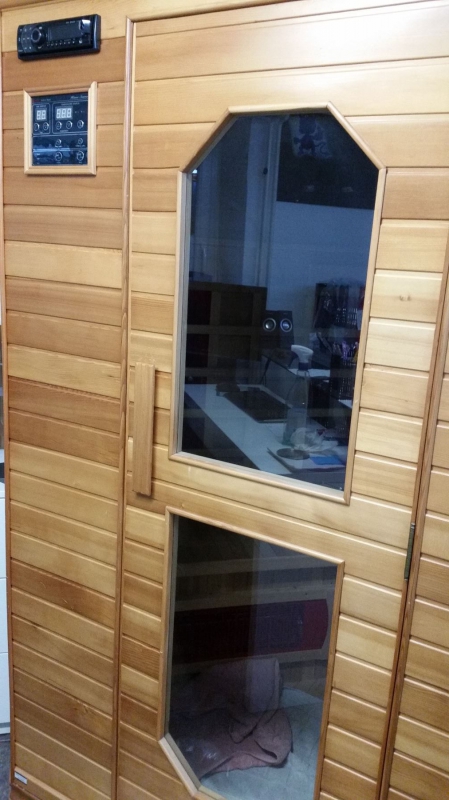 Infrarotkabine für 2-4 Personen, neuwertiger Zustand, voll funktionsfähig und selten gebraucht, zu verkaufen. Es handelt sich um ein Eckmodell, Beleuchtung sowohl innen wie aussen, Bedienpanel aussen, Zeitanzeige innen, inkl. Radio und Boxen sowie 2 ergonomischen Rückenlehnen.