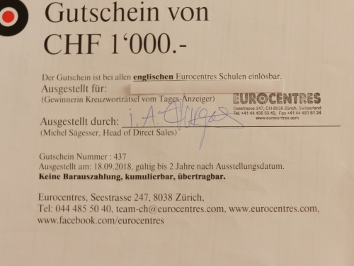 Es handelt sich um einen Wettbewerbsgewinn. Ich bin bereits über 70 jährig und kann nichts mehr anfangen damit.