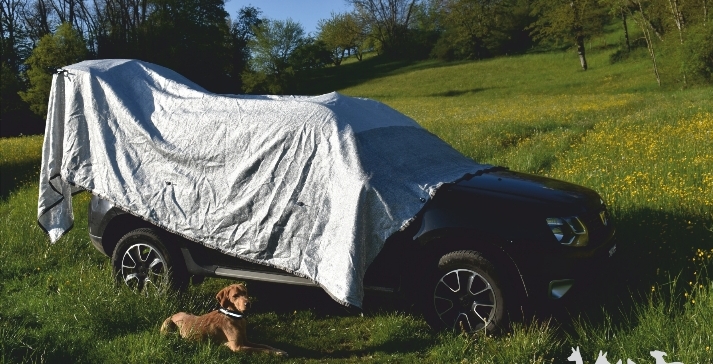 Aluminet 80% Schattenrate, das beste auf dem Markt erhältliche Material um Ihr Hundeauto bei Sonne zu schützen (beim Mantrailing, etc).