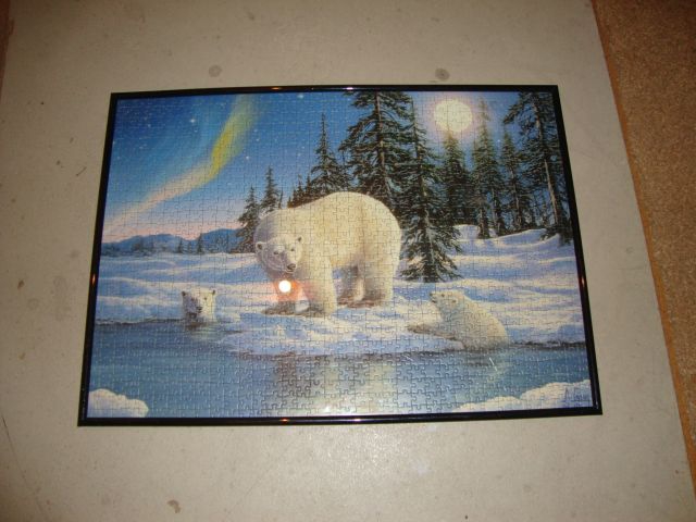 Verkaufe ein Eisbärenpuzzle mit Rahmen L:70cm. Brieite: 50.5cm. Abholung durch Käufer.