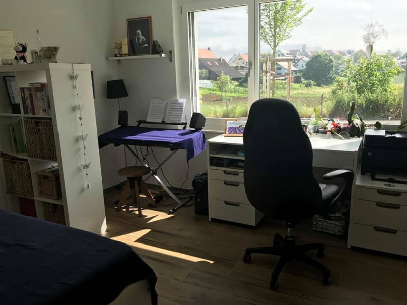 - Schlafzimmer (15 m2) mit grossem Fenster und Multimediaanschluss