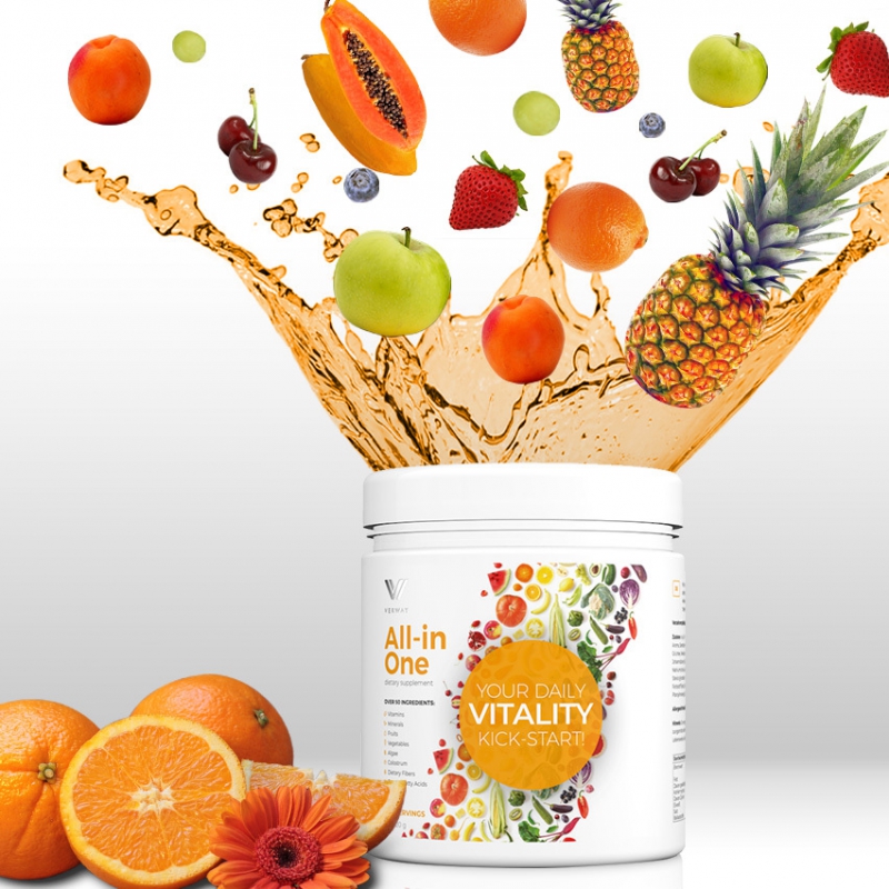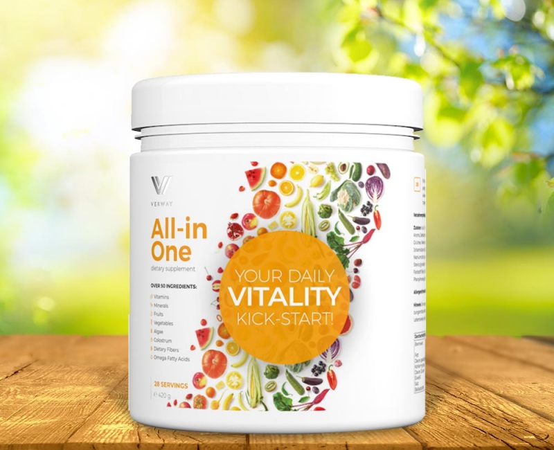 Das VERWAY All-In-One Instantgetränk ist die einfache und effektive Lösung zur Unterstützung Deines Vital- und Mikronährstoffhaushalts. Vollgepackt mit Vitami- nen, Mineralien, Obst, Gemüse, Algen, Ballaststoffen, Omega-Fettsäuren und Kolostrum, enthält VERWAY All- in-One eine einzigartige Kombination hochwertiger In- haltsstoffe als Ergänzung zu Ihrer täglichen Ernährung und der Ihrer Familie.