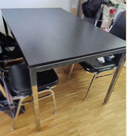 Esstisch schwarze matte Holzplatte, metallisches Gestell