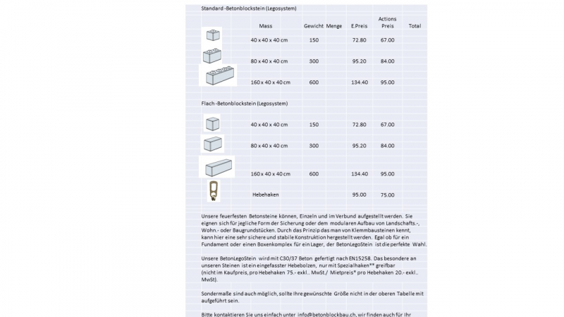 Betonblockstein 1.60 x 0.40 x 0.40 ab latz Stk. 95.- plus 7.7% MwSt.
