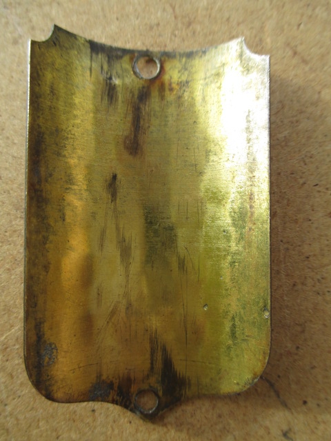 Springer Fabrikat. Schweizer Markenschild. Material Messing. Lochabstand Mittig gemessen 46 mm.Höhe 50 mm. Breite 28 mm. Gebogene Höhe 9 mm.