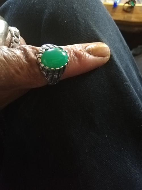 Herren Ring Edelstahl versilbert mit Naturlich, grosse Edelstein, Turkies Grösse 11, =1.8cm