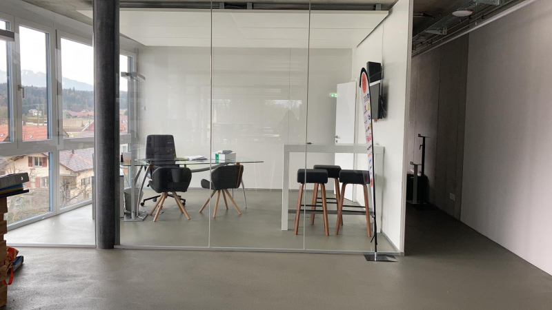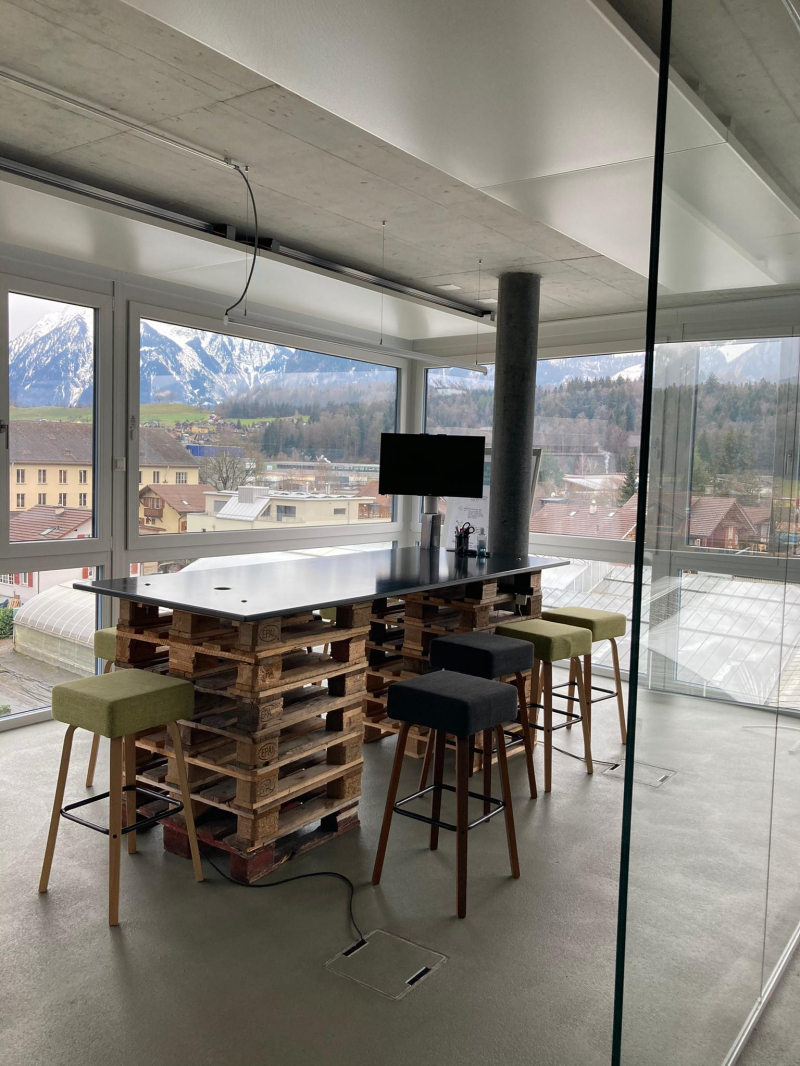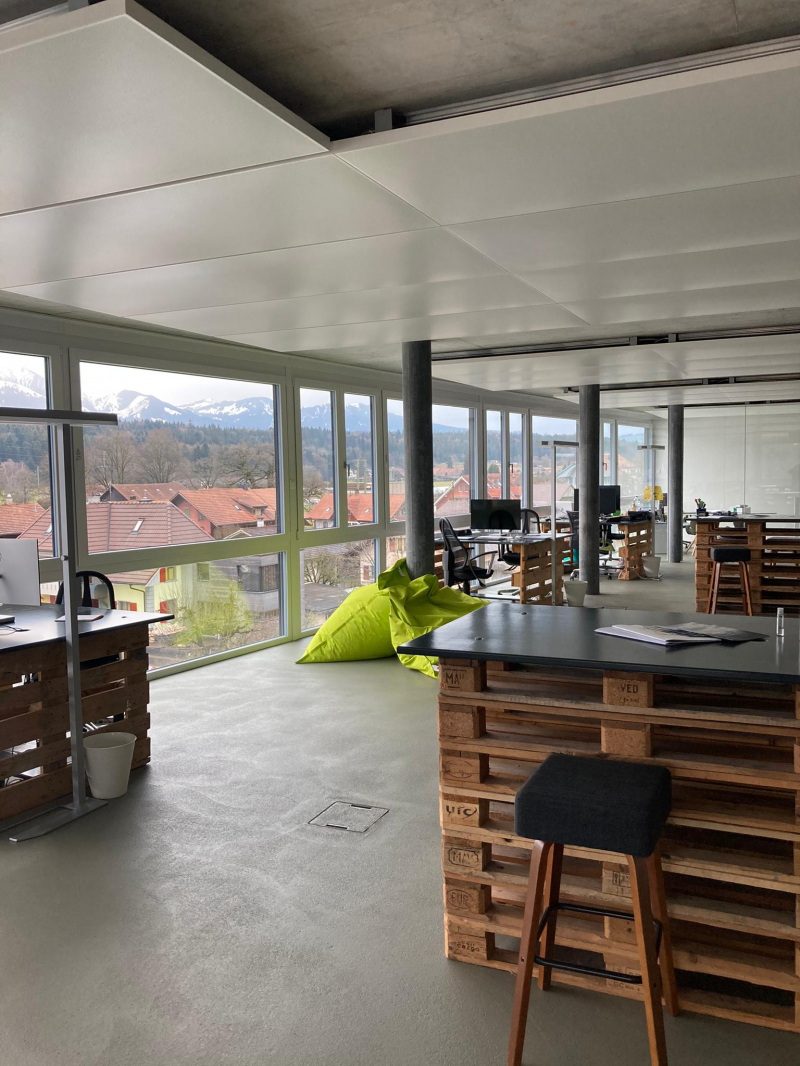 Wir vermieten Parzellen aus unseren grossen Büroräumlichkeiten. Unser Büro liegt in traumhafter Lage, mit direktem Blick auf die Alpen.