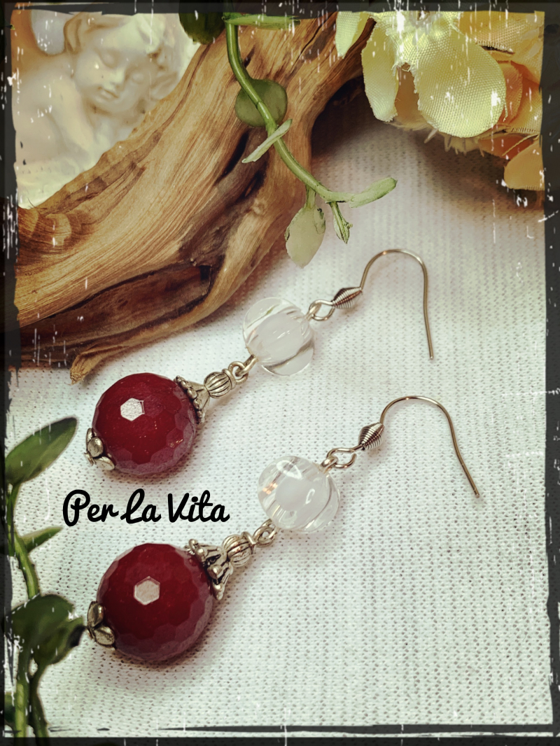 Ohrringe mit roten Achat-Stein und Glasperle. Länge 5,5cm. Handmade. Keine Garantie.