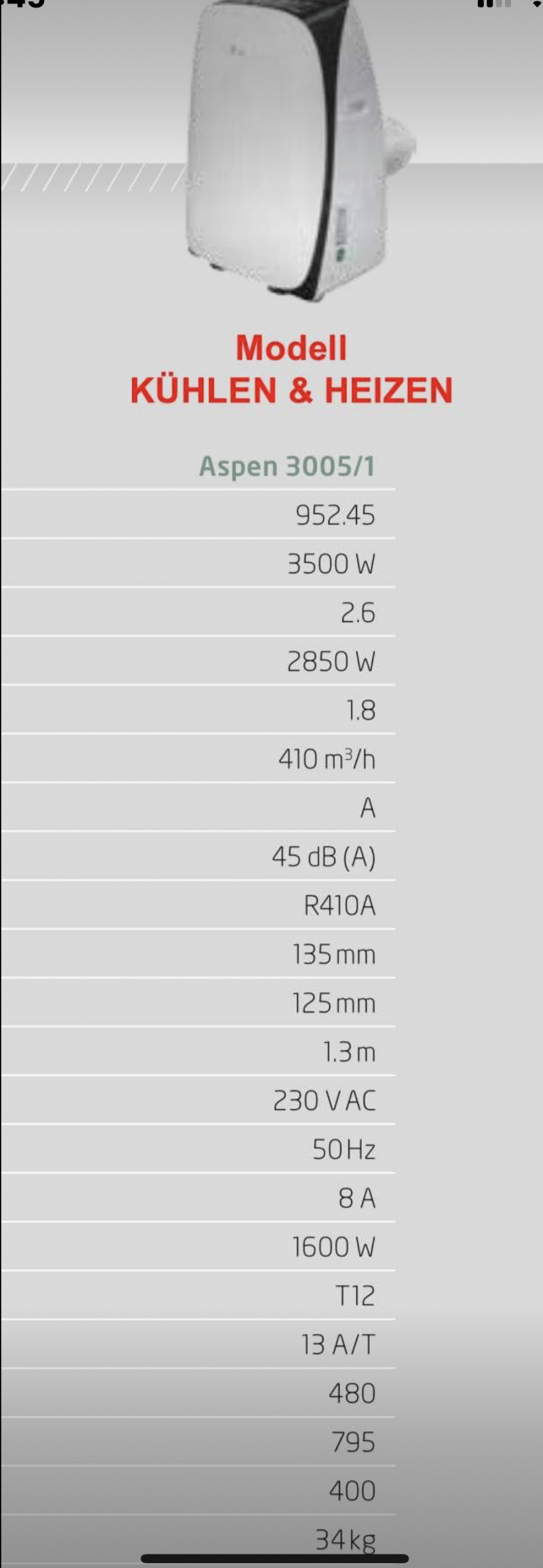Hallo zusammen ich habe vor ca 2 jahre eine Mobiles Klimagerät gekauft, ich brauche es kaum das wegen verkaufe ich sie weil ich eine ander Lösung gefunden habe das wegen verkaufe ich sie und es lauft einwandfreie wie beim 1 tag mann kann am sommer kühlen oder am Winter auch wärmen und es küht wie beim auto 16 grad für Hochsommer kann es empfohlen mann kann gut schlafen ohne grosse Lärm bis zu 23 Quadratmeter kann diese kühlen Orginal preis wäre 1270.- mann kann es für 600.- habeb Garantielauft noch über Subag Tech ag. Müss in Niederbuchsiten ab hollen