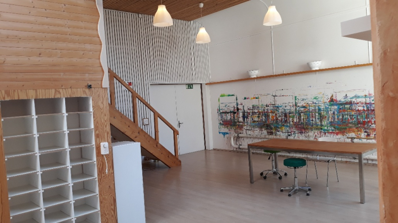 Ausstattung: Grosszügiger Lagerraum, Waschbecken und Toilette.