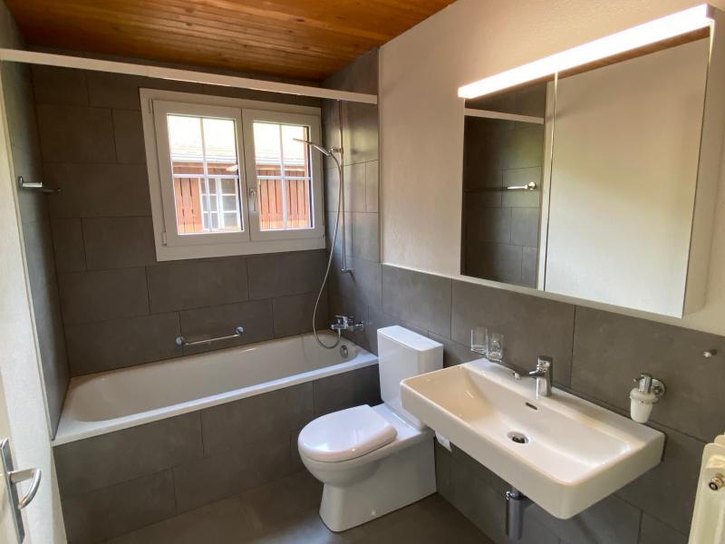 Sonnige und ruhige 4.5 Zimmer-Wohnung in Zweifamilienhaus. 1. Stock, mit Treppe (kein Lift) erreichbar. Komplett renovierte Küche. Mit Glaskeramikherd, Kühl- und Gefrierschrank, Backofen, Dampfabzug und Spülmaschine. Komplett renoviertes Bad. Überall neue Fenster und Balkontüren. Neue PVC/Vinylböden in Küche, Gang, Wohn- und Schlafzimmer sowie in einem Ess- oder Kinderzimmer. Zimmer teilweise mit Einbauschränken. Mit Balkon. Internetzugang. Eigene Waschmaschine und Trockner in gemeinsamer Waschküche. Grosser Estrich. Sitzplatz im Freien mit Grill (Gas/Holzkohle) möglich. Teilbenutzung des Gemüsegartens, nach Vereinbarung, möglich. Auf Wunsch kann eine Doppelgarage dazu gemietet werden, Fr. 120.- im Monat. Aussenabstellplatz ca. Fr. 40.- im Monat. Vermietung vorzugsweise an Nichtraucher. Haustiere evtl. nach Rücksprache.