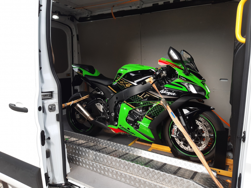 Professionell -Transporte mit Halteschiene und Auffahrrampe.