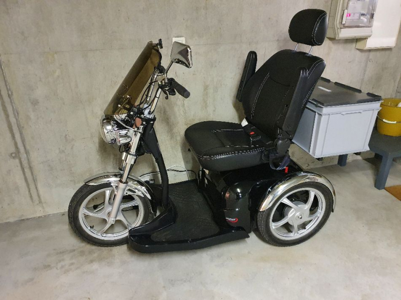 Der Scooter ist ohne Führerschein auf der Strasse zu fahren. Er wurde von 1 1/2 Jahren für CHF 7600 gekauft. Geschwindigkeit 10 kmh, Reichweite 40-50 km, Benutzergewicht bist 200 kg, Batterien 2 x 12 V. Das Fahrzeug ist gepflegt und ist in sehr gutem Zustand, wurde wenig gefahren.