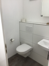 grösstenteils neu renovierte 2,5-Zimmerwohnung in einem 3-Familienhaus. Mit eigenem Zugang, eigener Sitzplatz, grosser Balkon und Kellerabteil; Dusche mit Waschmaschine/Tumbler, separates WC; Küche mit grossem kombinierte Kühl-Gefrierschrank und Spülmaschine; behindertengerechter Zugang; eigener Glasfaseranschluss