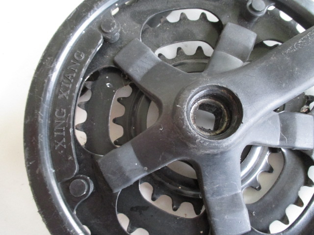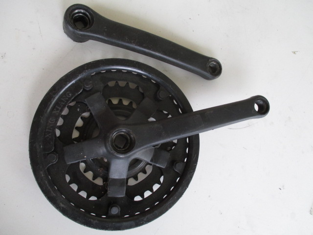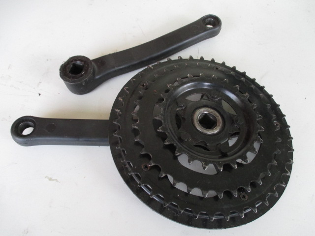 Neuwertiges Occasion Kettenblatt. Farbe Schwarz mit Kurbelgarnitur. Für Moauntain Bike Velos 26Zoll.(6/7/8 Gang,Zähne 43-34-24) 4 Kant Pedalarm.Totale Länge der Pedalarme 200mm Mittig gemessen 170 mm. Lochgewinde Ø für Pedale,9/16 Zoll Umrechnung 14.28mm. Abholung vor Ort Vorkasse! Postversand möglich.