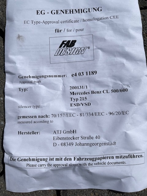 Mercedes s-Klasse C 215 CL 500/600 1999 -2006 Neue Orig. Verpackte Fox Eselstahl Auspuffanlage mit Fab Design Blenden .