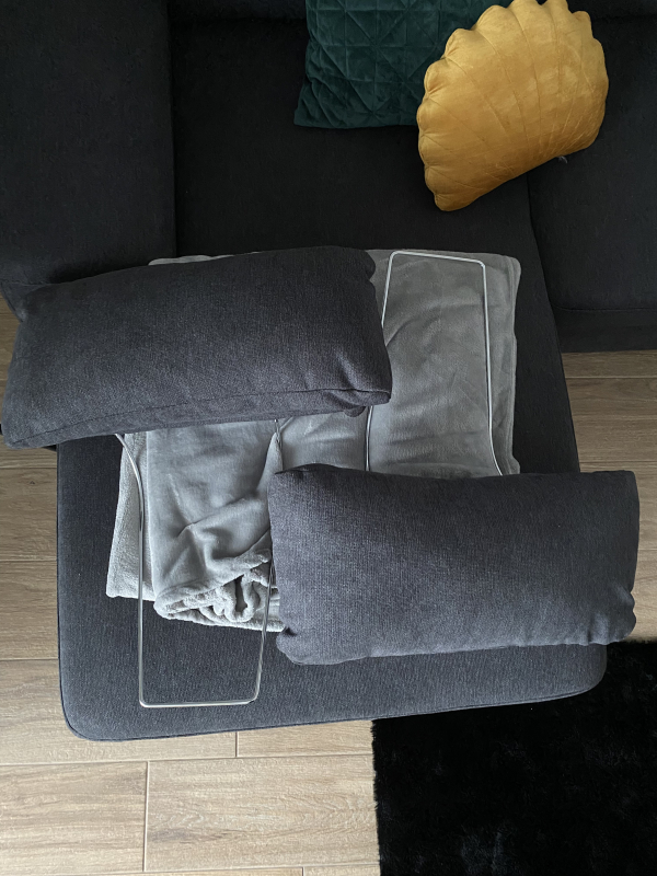 In der Mitte des Sofas: kann man ein weiteres Sofateil ausziehen und das Sofa verwandelt sich in ein bequemes und praktisches Bettsofa.