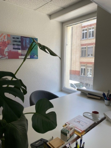 Der Raum ist ca. 16 m2 gross und dein Platz ist eingerichtet mit (Steh-)Pult und Stuhl und voll funktioninsfähig mit Internet, Drucker und Ablagemöglichkeit. Insgesamt sind 6 Büros auf dem Stock verteilt und mit ihnen teilen wir auch ein grosses Sitzungszimmer mit Buchungsmöglichkeit - auch das ist in deiner Miete inbegriffen. Wenn du auch nicht gerne alleine im Büro sitzst, dich auch mal gerne austauschst, dennoch auch gerne deine Ruhe hast, auch mal Besprechungen hast und dich auch repräsentativ präsentieren möchtest. Lass uns sprechen. Du kannst deinen Büro-Anteil entweder für die ganze Woche/Monat mieten oder von Montag bis Donnerstag (entsprechend reduziert sich die Miete für dich). Freue mich auf deinen Kontakt.