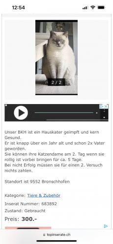 Der besitzer hat uns Bounty verkauft als 4Jährigen Kater, er ist nicht 1 Jahr alt!! zudem Fauchte er uns (mich und freundin an, ist nicht stubenrein und sollte nur in einzelhaltung gehalten werden!!