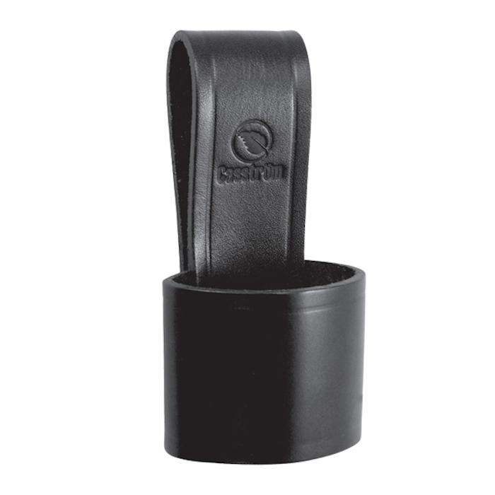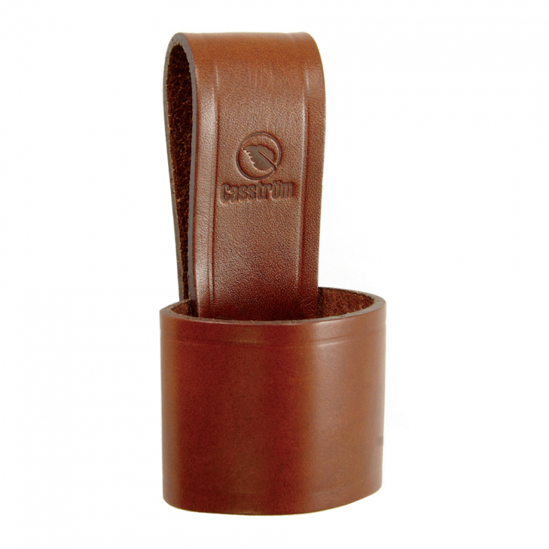 Axthalterung von Casström zum Anhängen einer Axt am Gürtel. Die Axthalterung wurde aus braunem, ca. 3 mm starkem, pflanzlich gegerbtem Vollnarbenleder hergestellt. Sie passt für die meisten Axtmodelle und eignet sich für Gürtel mit einer maximalen Gürtelbreite 6,5 cm.