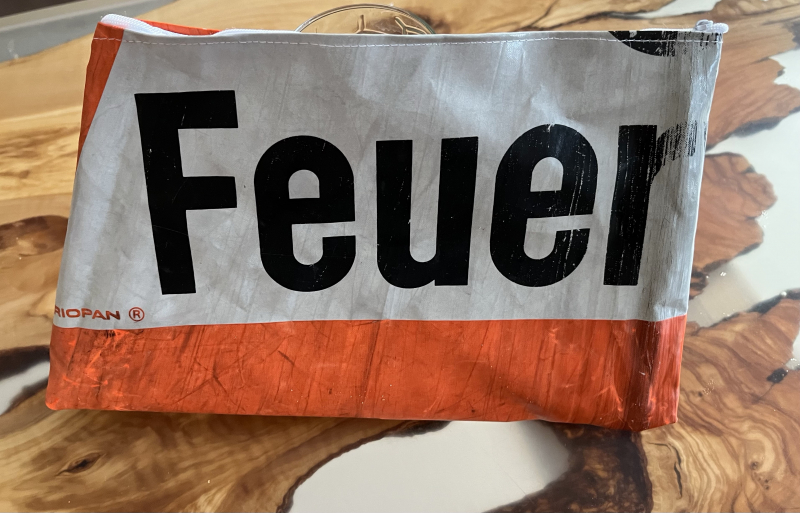 Handgefertigte Nessesaire aus alten Faltsignal Feuerwehr
