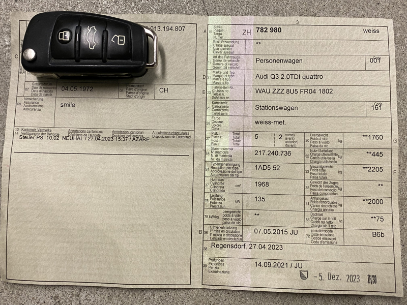 Audi Q3 2.0 TDI design quattro, 184 PS, 166.000 km, frisch ab Service und MFK, 6-Gang-Schaltgetriebe, Allrad, Sitzheizung, Klimaautomatik, Winterbereifung mit sehr gutem Profil. Gepflegtes Fahrzeug, komplett Bremsbelag und hintere Federn sind neu ersetzt, schwenkbare Anhängerkupplung. Fachgerecht reparierter Blechschaden auf der Fahrerseite.