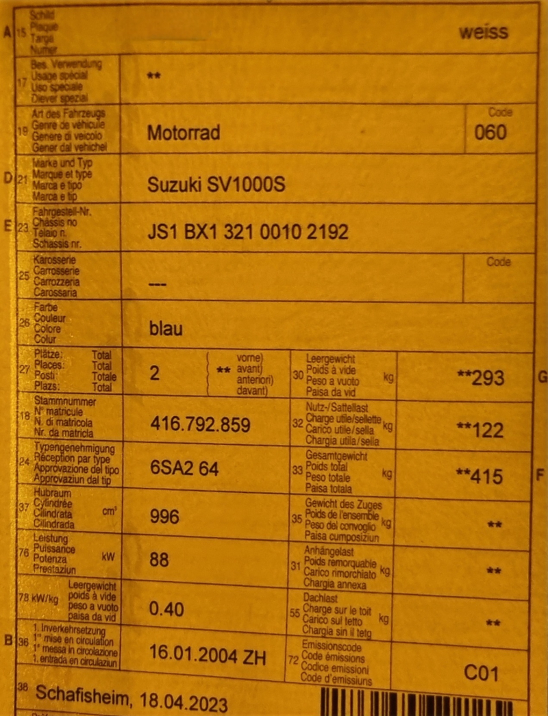 Suberbike Lenker wurde im Fahrzeugausweis eingetragen