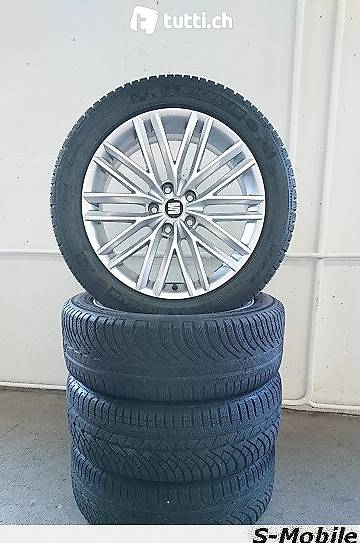 1 Satz neuwertige Original Seat Ateca Felgen, 7x18", ET45, inkl. Winterreifen Nokian Snowproof , 225/50/R18" 99V. Profil 8mm.